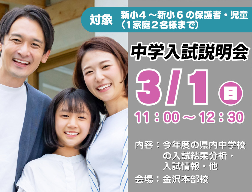 中学入試説明会 3/1(日)