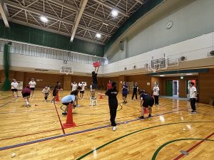 運動会では玉入れ、台風の目、障害物競走、フリースロー選手権、リレーを行いましたが、途中から応援に熱が入りすぎて写真撮影を忘れ、序盤の玉入れぐらいしか競技の写真がありません…。