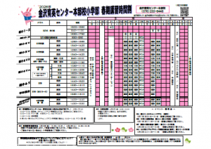 金沢本部校小学部の春期講習時間割↓↓↓